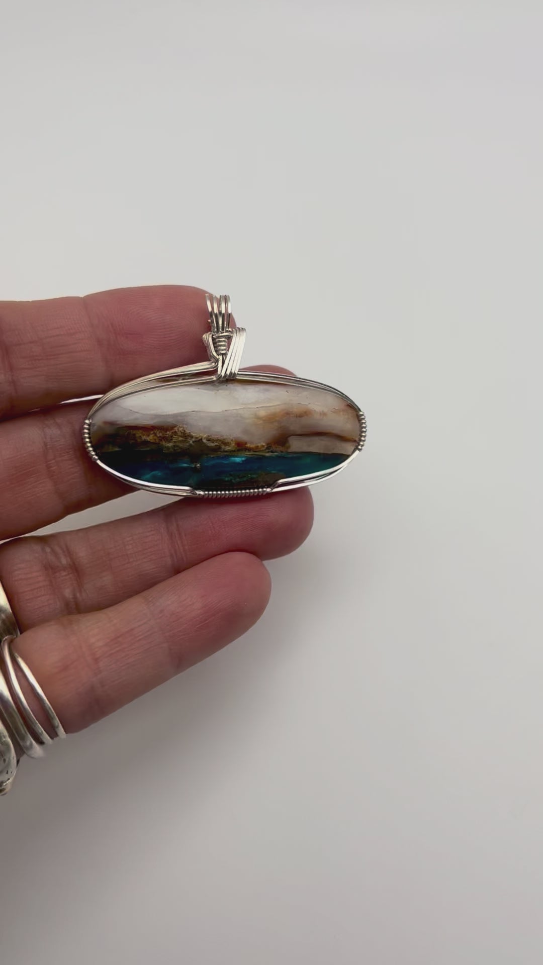 This ethically sourced gemstone is meticulously hand-wrapped in sterling silver, offering a cool, elegant sheen that perfectly complements the stone’s soft, serene hues. Every wrap is thoughtfully crafted to enhance the natural contours of the opal, making each pendant truly unique, no two stones will ever be exactly alike.